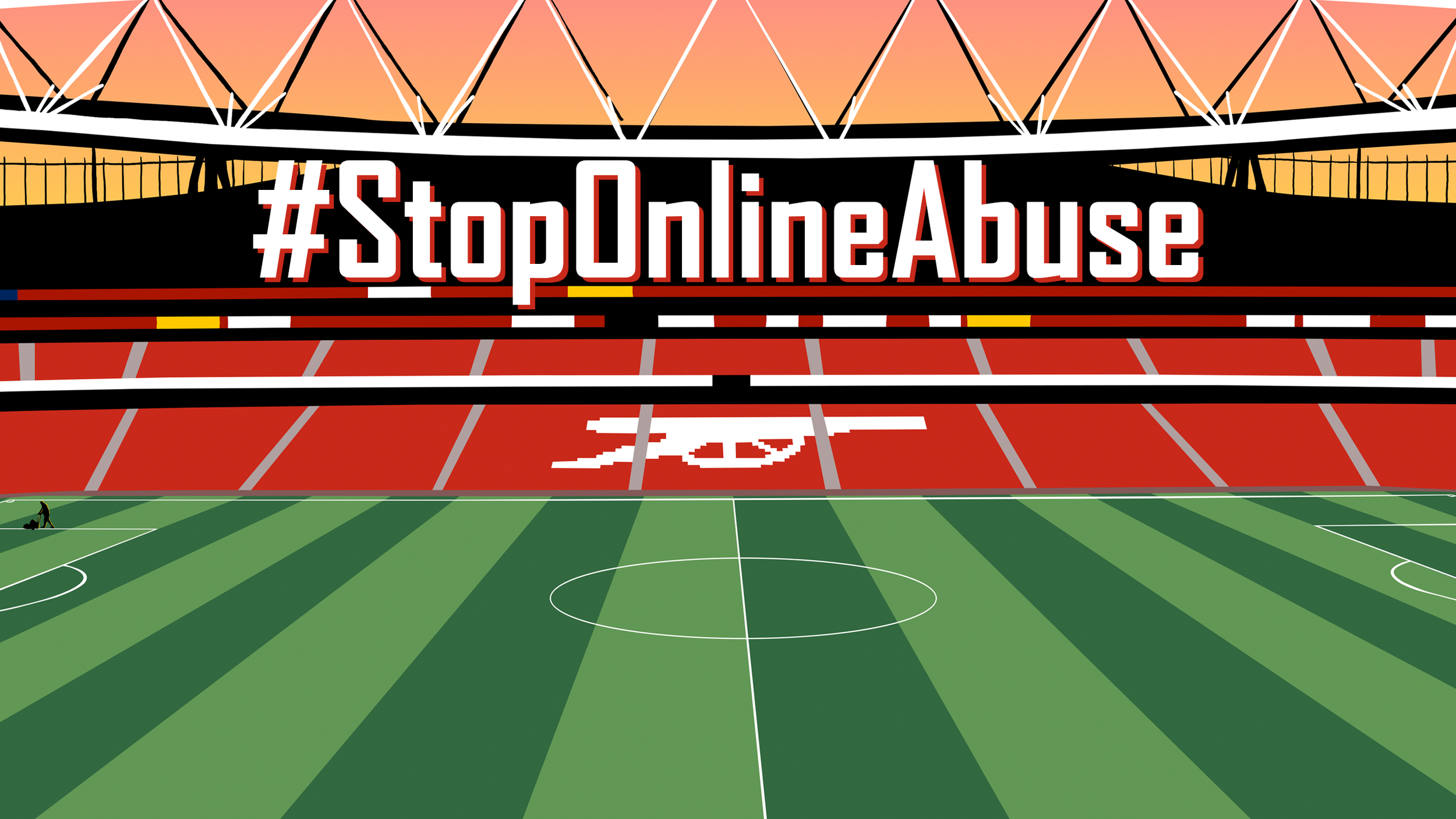 For Arsenal’s, #StopOnlineAbuse campaign, I created an illustration of the Emirates Stadium. This includes the pitch, stands, groundsman and a sunset, It’s designed to showcase a clear message with an instantly recognisable look for the fans while maintaining the tone and style wanted by the club.